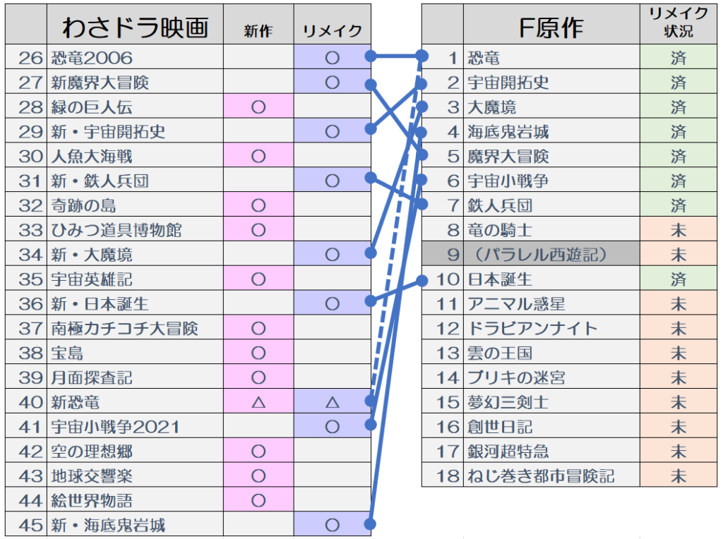 今までの映画のリメイク、新作状況をまとめました。